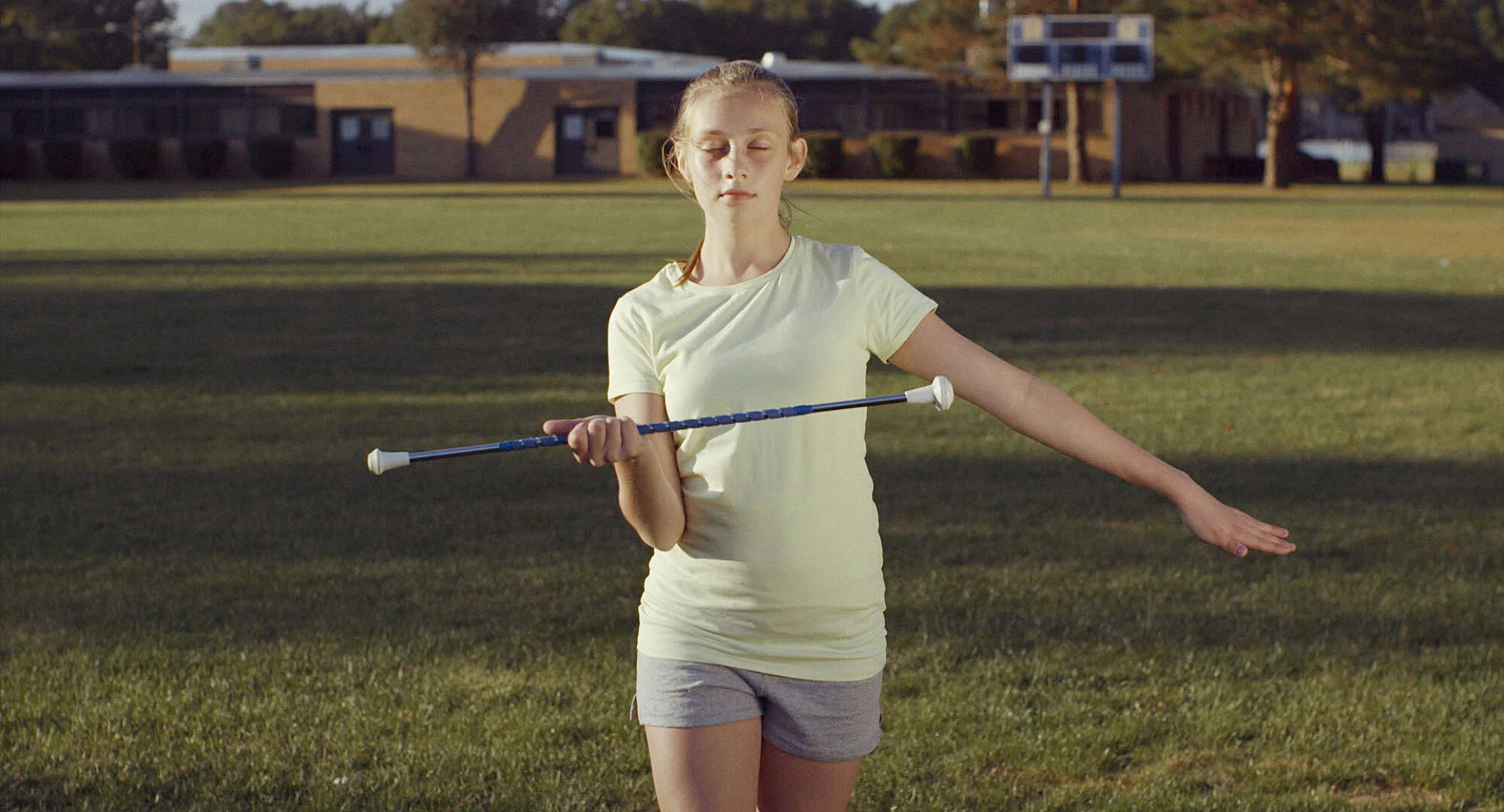 ‘A girl twirls a baton on a soccer field. An old man stands on his lawn and stares out at the world. A salesman of”sensory time travel” visits a client, who remembers a morning in a cafe. A man on his way to work misses his train out of the suburbs. A young boy wanders off into the woods, where he has a strange encounter. But at one crucial moment, they become linked through a moment of piercing awareness. Writer-director Ollie Verschoyle has crafted a hypnotic composite portrait of strangers who share one exquisitely crafted moment of interconnection in American suburbia. Using a unique mixture of fantasy and naturalism, it uses the tools of cinema to create a odd, beguiling synchronicity of consciousness when four strangers pierce through the veils of their individual realities to glimpse at the mysterious, beautiful present reality that connects them. Verschoyle takes on both director and cinematographer roles, and the narrative and visual development in the film are yoked in a particularly intimate way. Exquisitely photographed with piercing clarity, the film has a precise eye for the small details of suburbia: the sprinklers, trees, lawns, signs, and cars that seem invisible to most people as they go about their daily lives. The film’s achievement is how it seems to foreground this layer of sensory “detritus,” and in the act of bringing it attention, imbues the stuff of ordinariness with a mysterious beauty. Colors seems particularly important in this slice of the world, with yellow linking all the characters. The color of optimism and happiness, it seems to suffuse each character’s world with a particularly luminous light, elevating the ordinary. Sound also plays a strong part in the overall musicality of the film. The score is particularly effective, both evocative and haunting, especially during the more traditionally suspenseful sequences of the short. The sound design is layered in an unusual way, connecting each separate character. There is no real traditional dialogue, underscoring a sense of the uncanny. The editing has its own rhythm, attuned to the small shifts in sound, movement and light that link all the characters. Cuts often happen over matching movement, propelling character towards a moment of change. As the moment builds and unfolds, the interplay of sound and visuals seem to orchestrate themselves into a convergence, a collective “deep breath” that pierces through each character’s world and links them all together, by virtue of simply being alive at the same moment of time and space. Some characters seems to be lost in the past, others frozen by fear and others simply present — but the pause takes them all out of their ordinary reality into a brief transcendence. The title “Madeleine” evokes not a character name, but the famed madeleine pastry that plays such a pivotal role in Marcel Proust’s modernist literary achievement “In Search of Lost Time.” Like its literary antecedent, the short film is a poetic meditation about how we experience time, carrying the past and sometimes even the future in our present. Rarely, though, do we often look up out of our concerns and simply become alive to the world happening around us. “Madeleine” creates that uncanny transcendent moment when we stop, pause and become aware of the magic behind the mundane surfaces of life — when we are aware of our aliveness, in fact, and see it for the remarkable feat that it is.’
